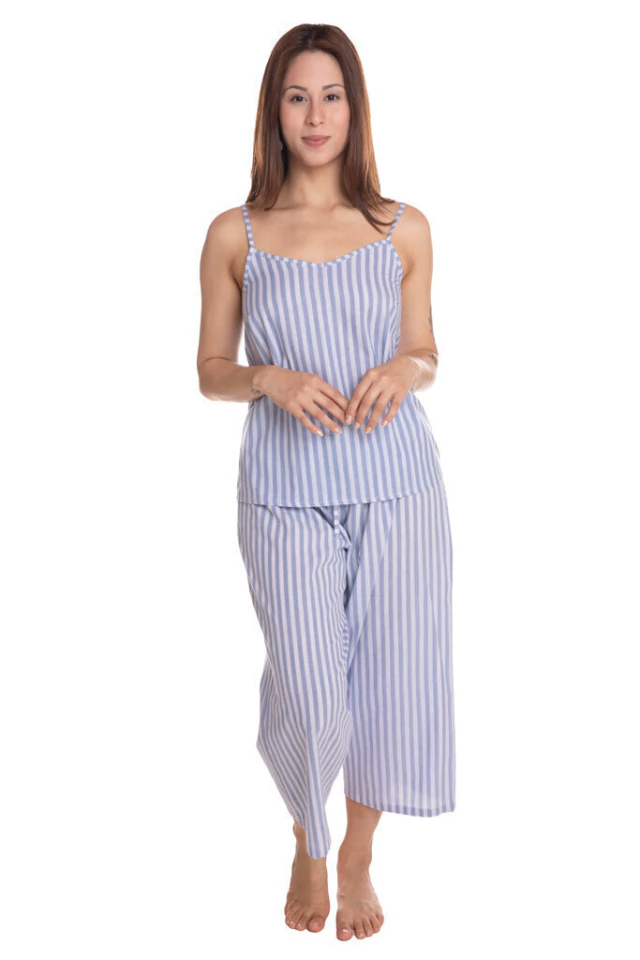 Seguindo a proposta de um homewear confortável e jovem, o pijama de Calça e Alcinha Listrado é ideal para as mulheres que prezam o conforto sem perder o estilo para ficar em casa e até mesmo na hora de dormir.