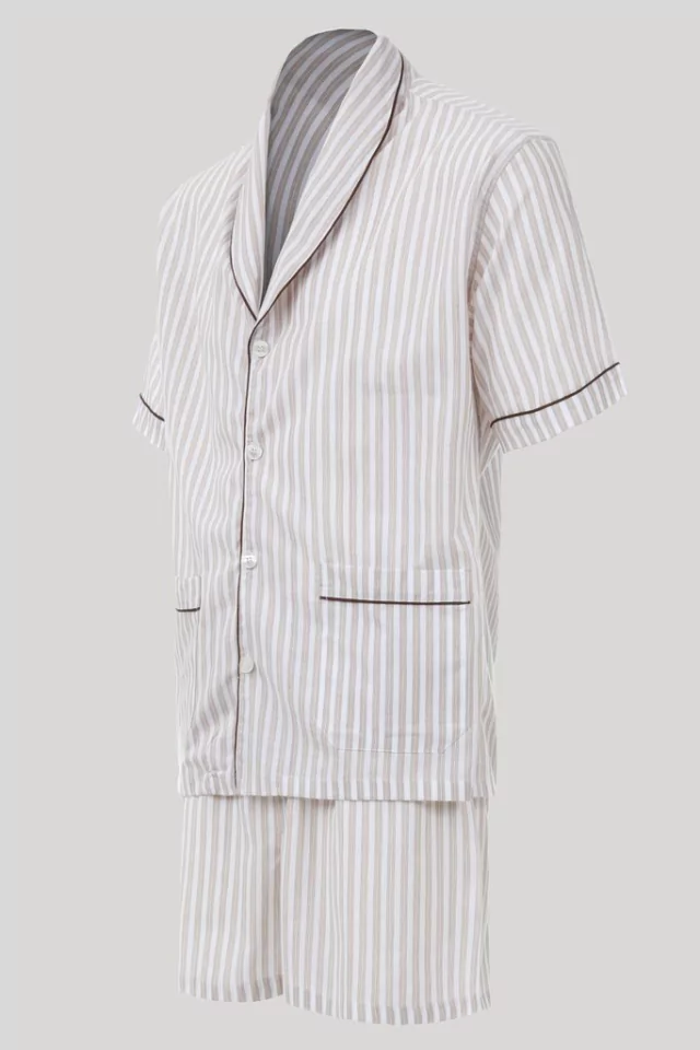 Pijama modelo tradicional smoking com shorts para os dias frescos.