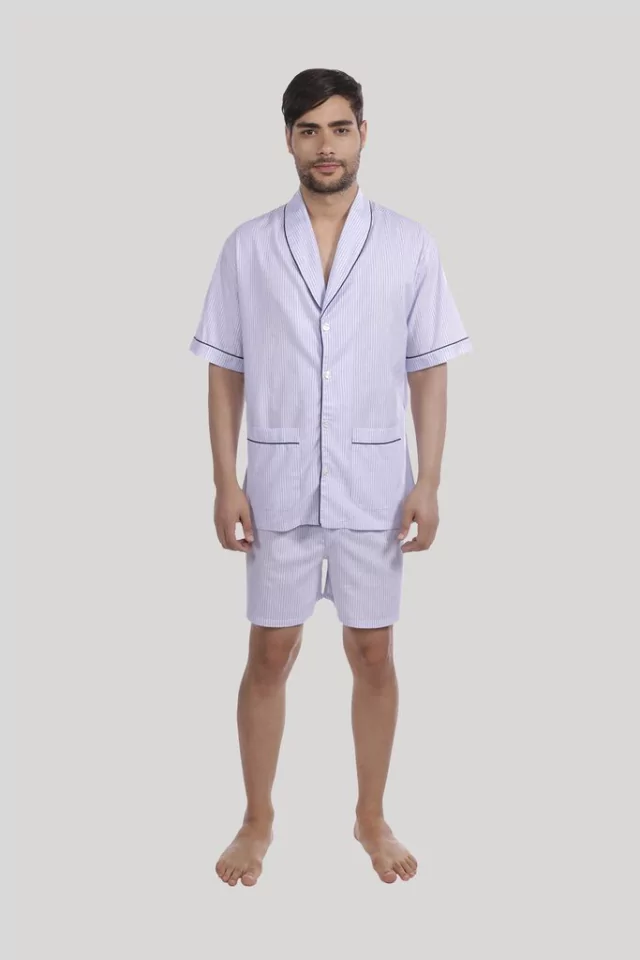 Pijama modelo tradicional smoking com shorts para os dias frescos.